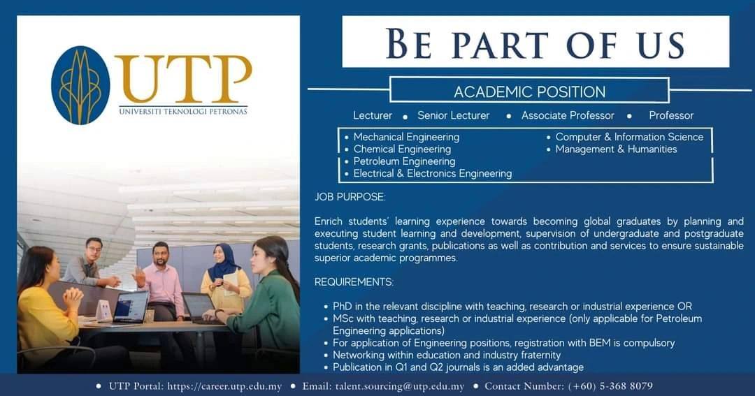 Iklan Jawatan Universiti Teknologi Petronas (UTP)