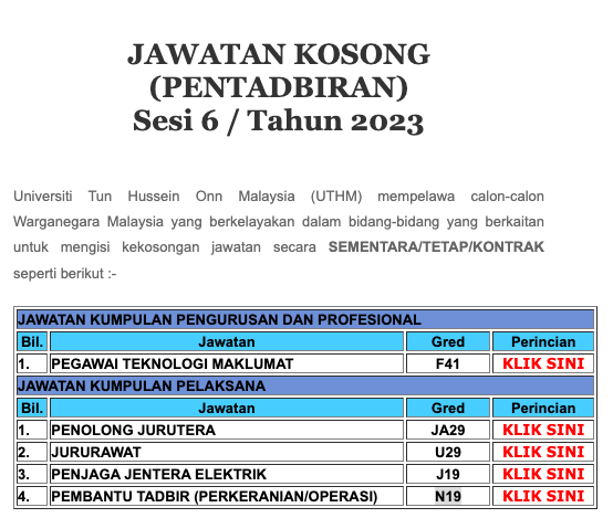 Iklan Jawatan Universiti Tun Hussein Onn Malaysia (UTHM)