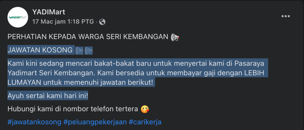 Iklan Jawatan YADIMart