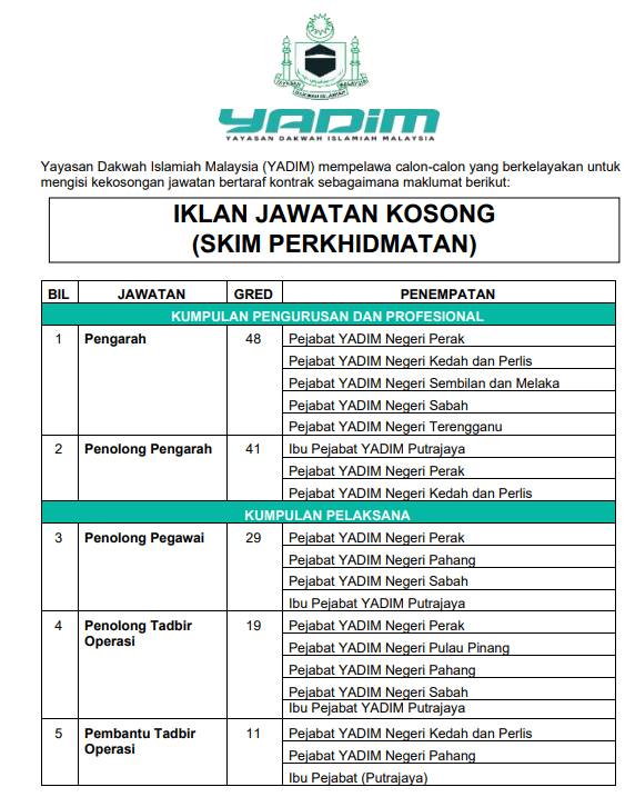 Iklan Jawatan Yayasan Dakwah Islamiah Malaysia (YADIM)