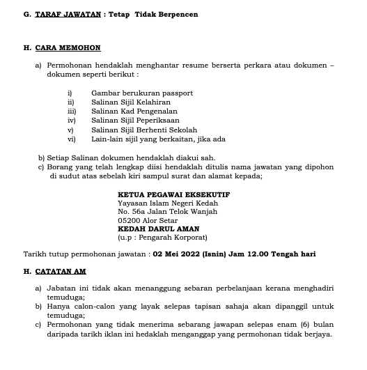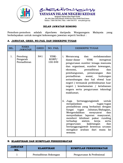 Iklan Jawatan Yayasan Islam Negeri Kedah