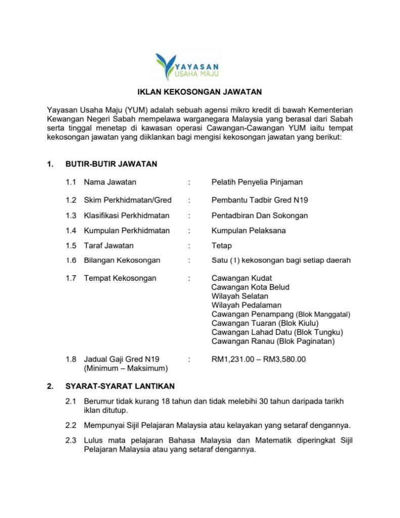 Iklan Jawatan Yayasan Usaha Maju