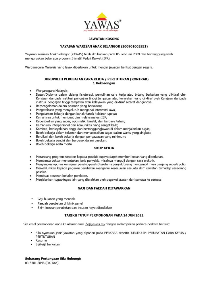 Iklan Jawatan Yayasan Warisan Anak Selangor (YAWAS)