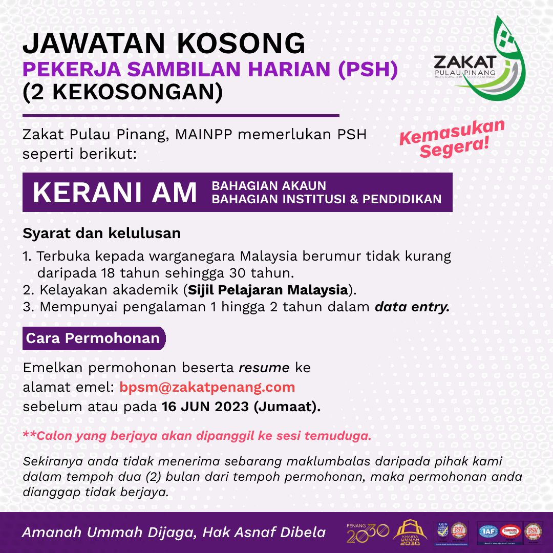 Iklan Jawatan Zakat Pulau Pinang (MAINPP)