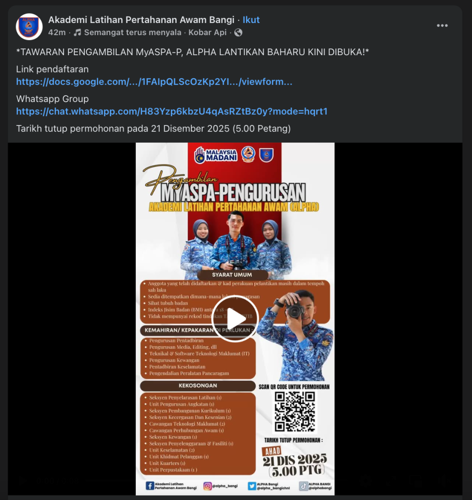 Iklan Kini Akademi Latihan Pertahanan Awam (ALPHA) / Pengambilan MyASPA-P