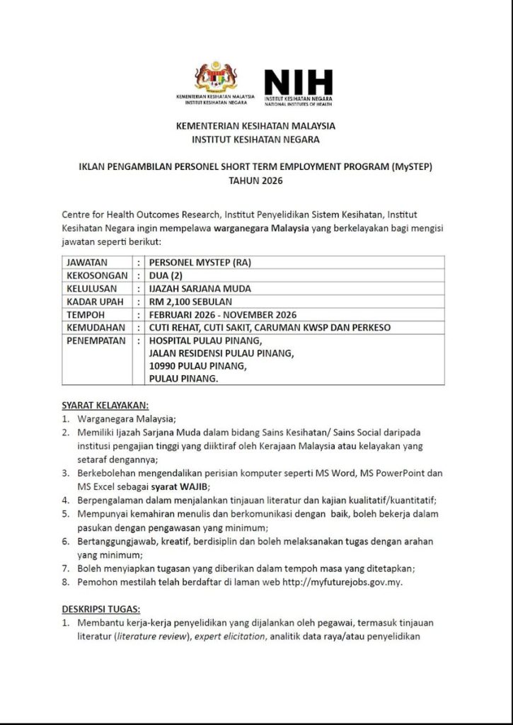 Iklan Kini Institut Kesihatan Negara / Kekosongan Personel MySTEP