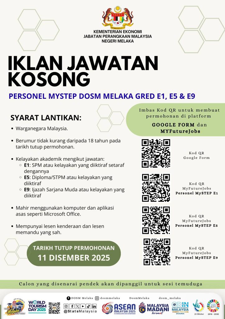 Iklan Kini Jabatan Perangkaan Malaysia Negeri Melaka / Kekosongan Personel MySTEP