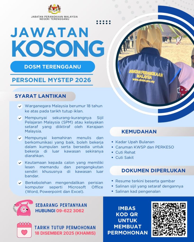 Iklan Kini Jabatan Perangkaan Malaysia Negeri Terengganu / Kekosongan Personel MySTEP Klik Iklan Jawatan