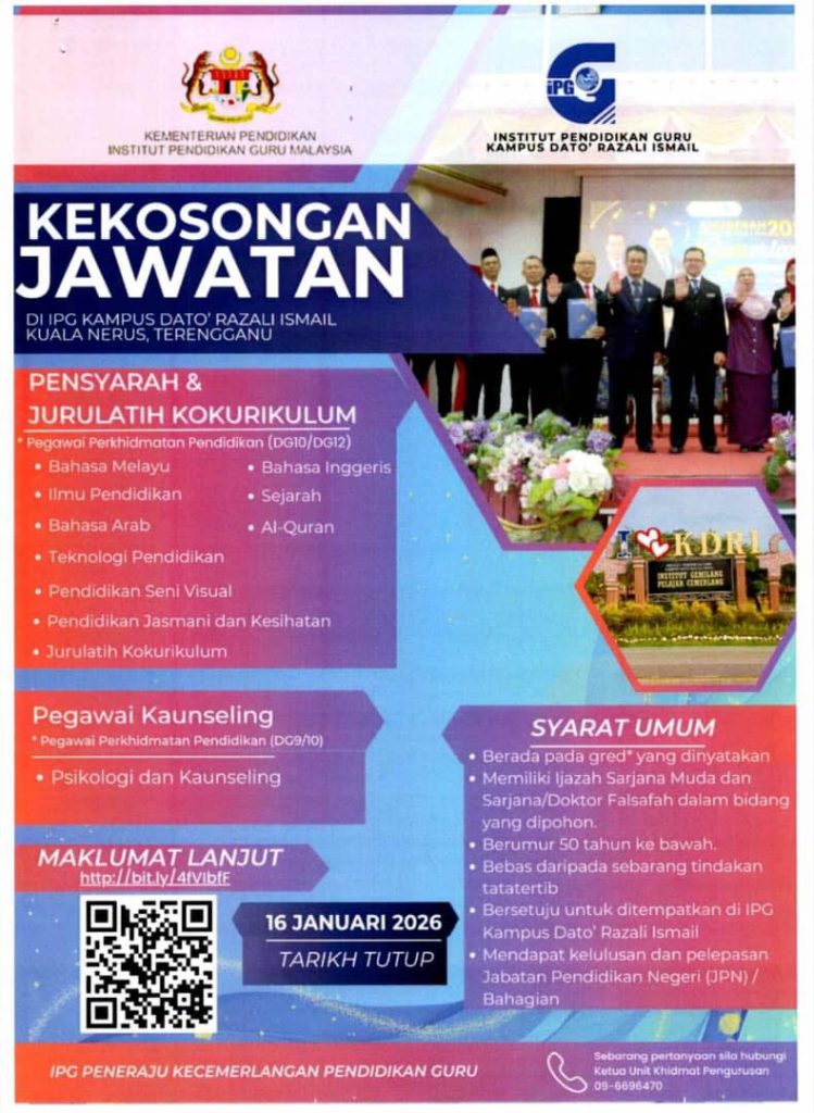 Iklan Kini Jawatan Institut Pendidikan Guru