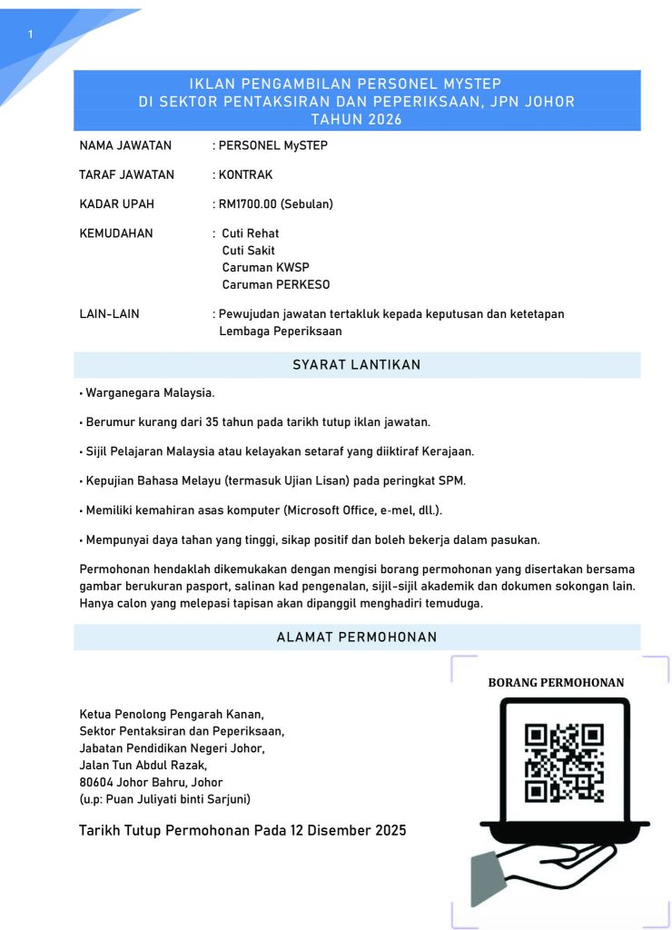 Iklan Kini Jawatan Jabatan Pendidikan Negeri Johor