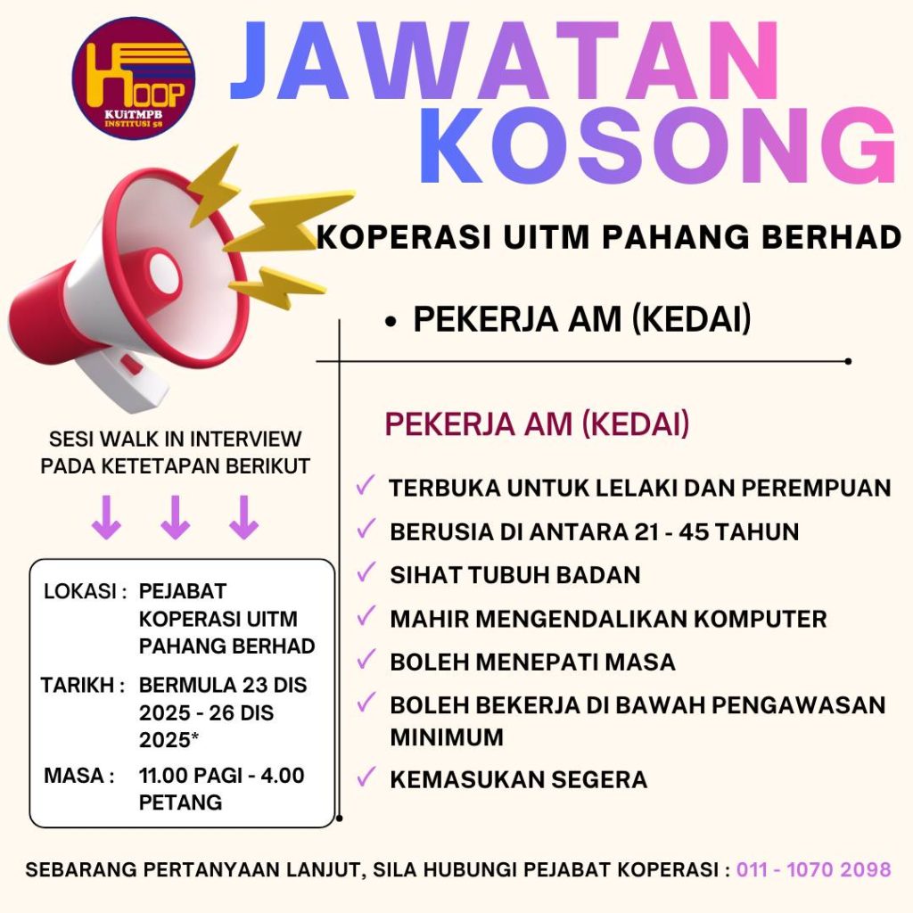 Iklan Kini Jawatan Koperasi UiTM Pahang Berhad