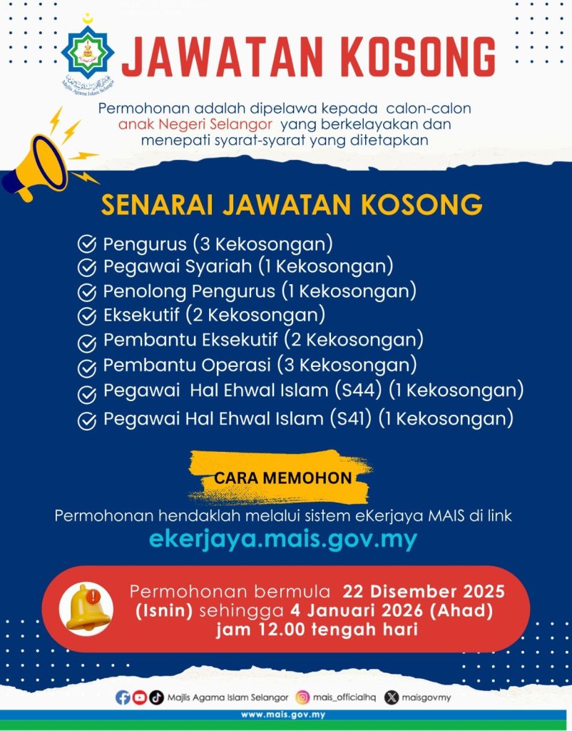 Iklan Kini Jawatan Kosong Majlis Agama Islam Selangor (MAIS)