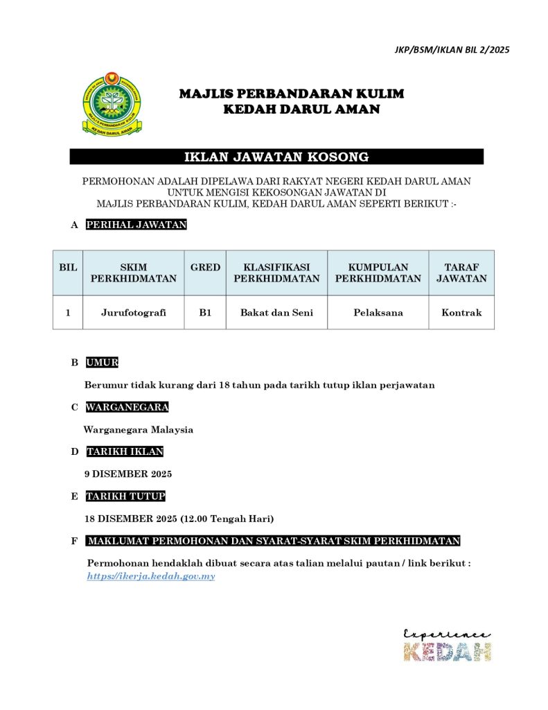 Iklan Kini Jawatan Majlis Perbandaran Kulim