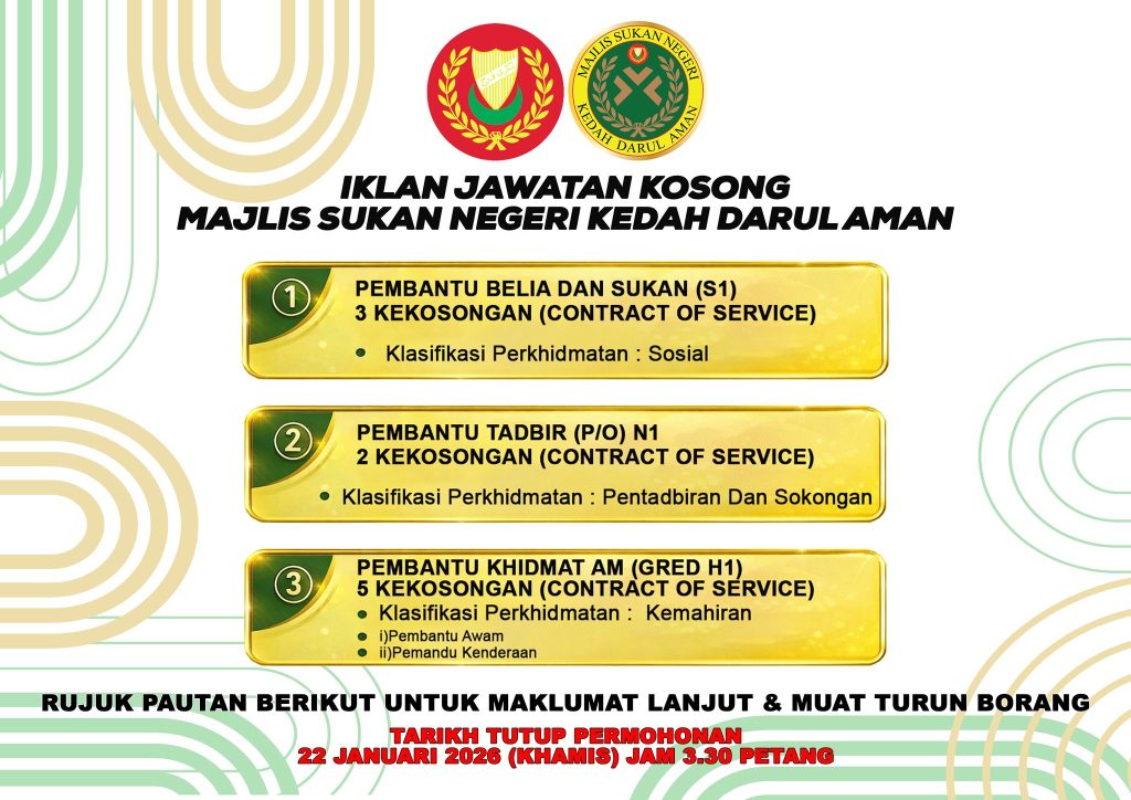 Iklan Kini Jawatan Majlis Sukan Negeri Kedah / Kekosongan Pelbagai Jawatan