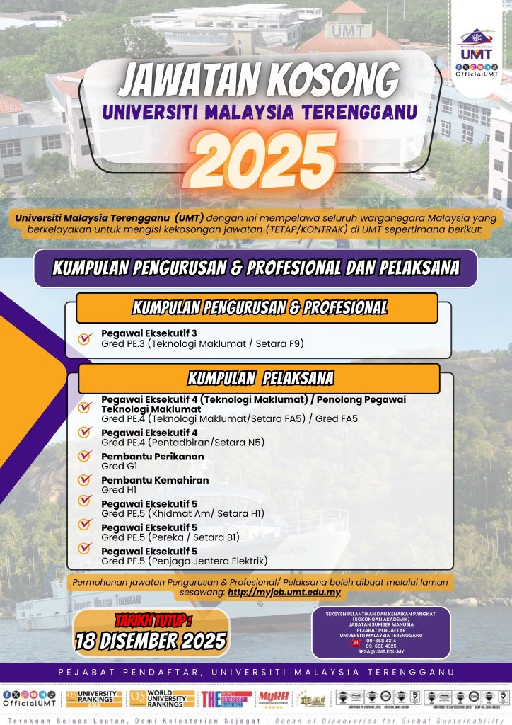 Iklan Kini Jawatan Universiti Malaysia Terengganu (UMT)