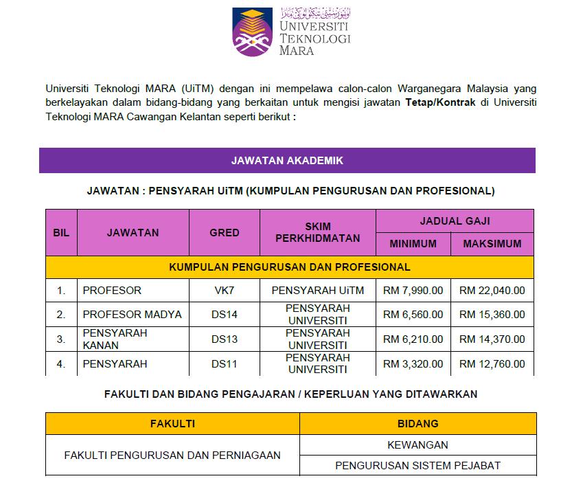 Iklan Kini Jawatan Universiti Teknologi MARA (UiTM) Kelantan