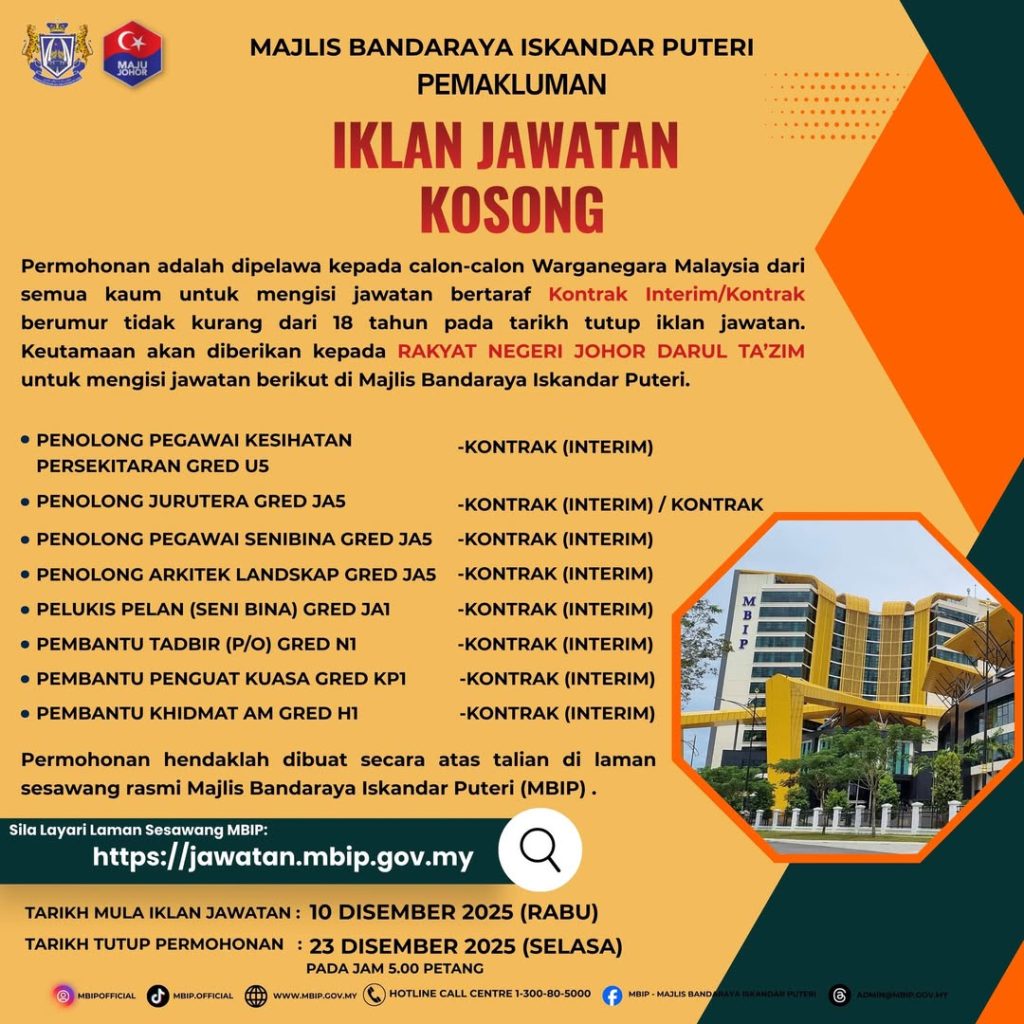Iklan Kini Majlis Bandaraya Iskandar Puteri / Kekosongan Pelbagai Jawatan Pentadbiran Klik Iklan Jawatan