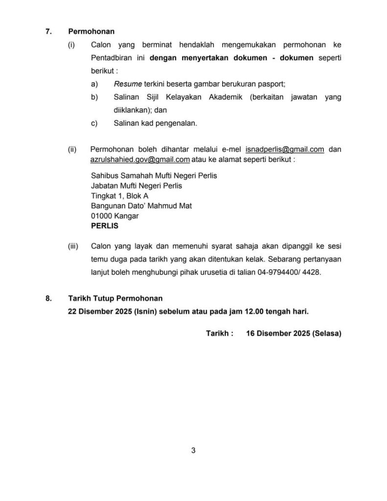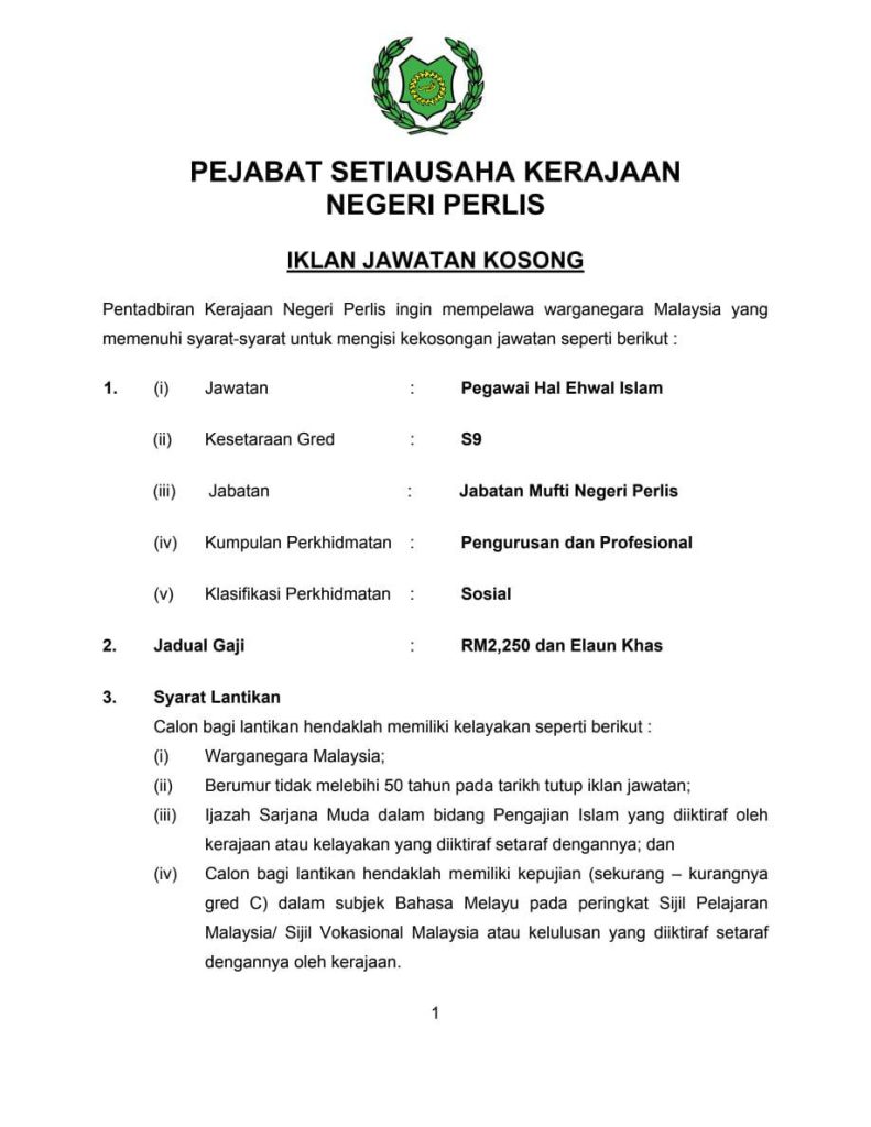 Iklan Kini Pejabat Setiausaha Kerajaan Negeri Perlis (SUK Perlis) / Kekosongan Pegawai Hal Ehwal Islam Klik Iklan Jawatan