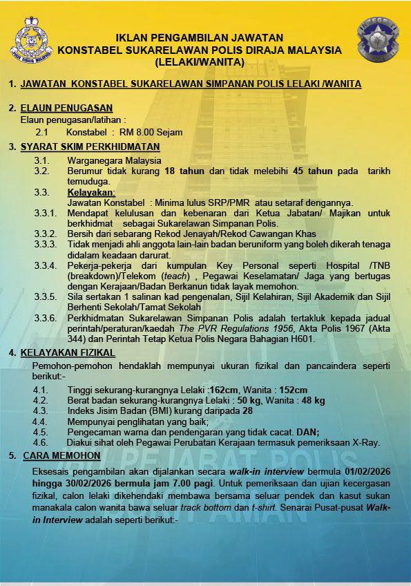 Iklan Kini Polis DiRaja Malaysia (PDRM) / Kekosongan Konstabel SSPDRM