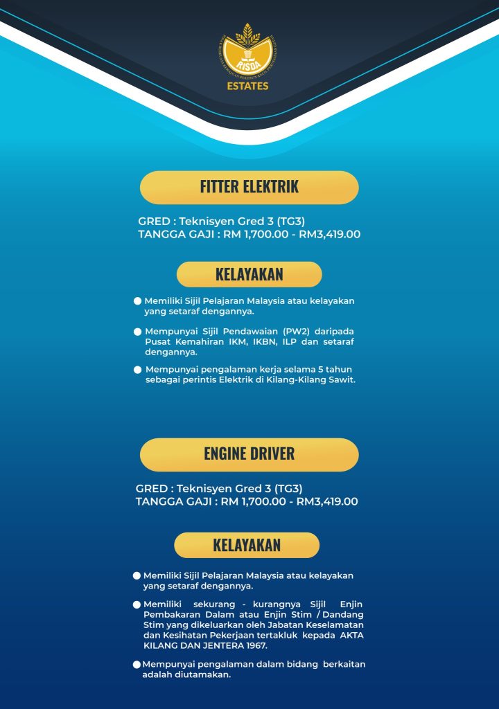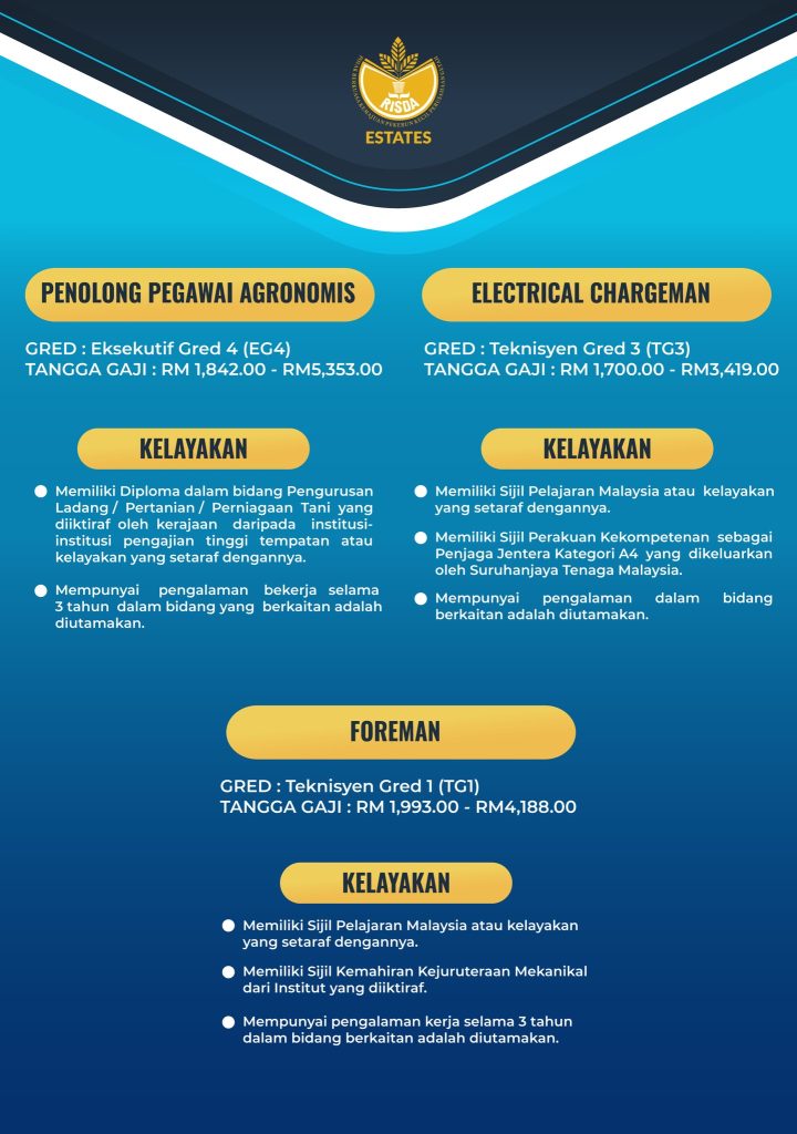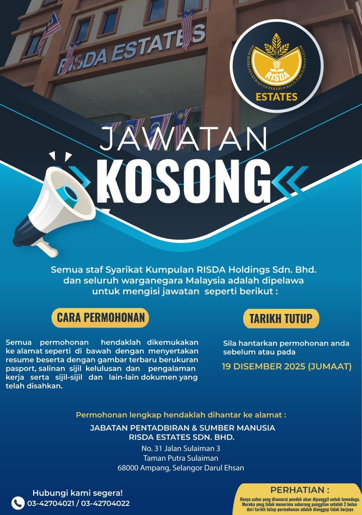 Iklan Kini RISDA Estates / Kekosongan Pelbagai Jawatan