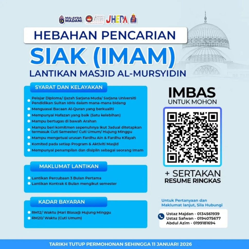 Iklan Kini Tawaran Permohonan Siak (Bilal) Masjid Al-Mursyidin Upsi