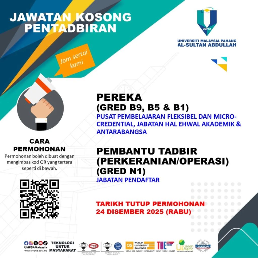 Iklan Kini Universiti Malaysia Pahang (UMP) / Kekosongan Pelbagai Jawatan