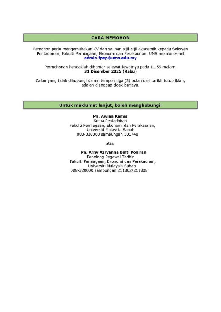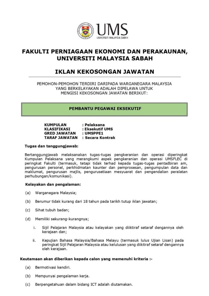 Iklan Kini Universiti Malaysia Sabah (UMS) / Pembantu Pegawai Eksekutif