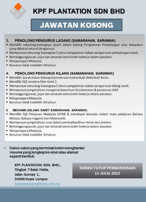 Iklan Jawatan Koperasi Permodalan Felda Malaysia Berhad (KPF)