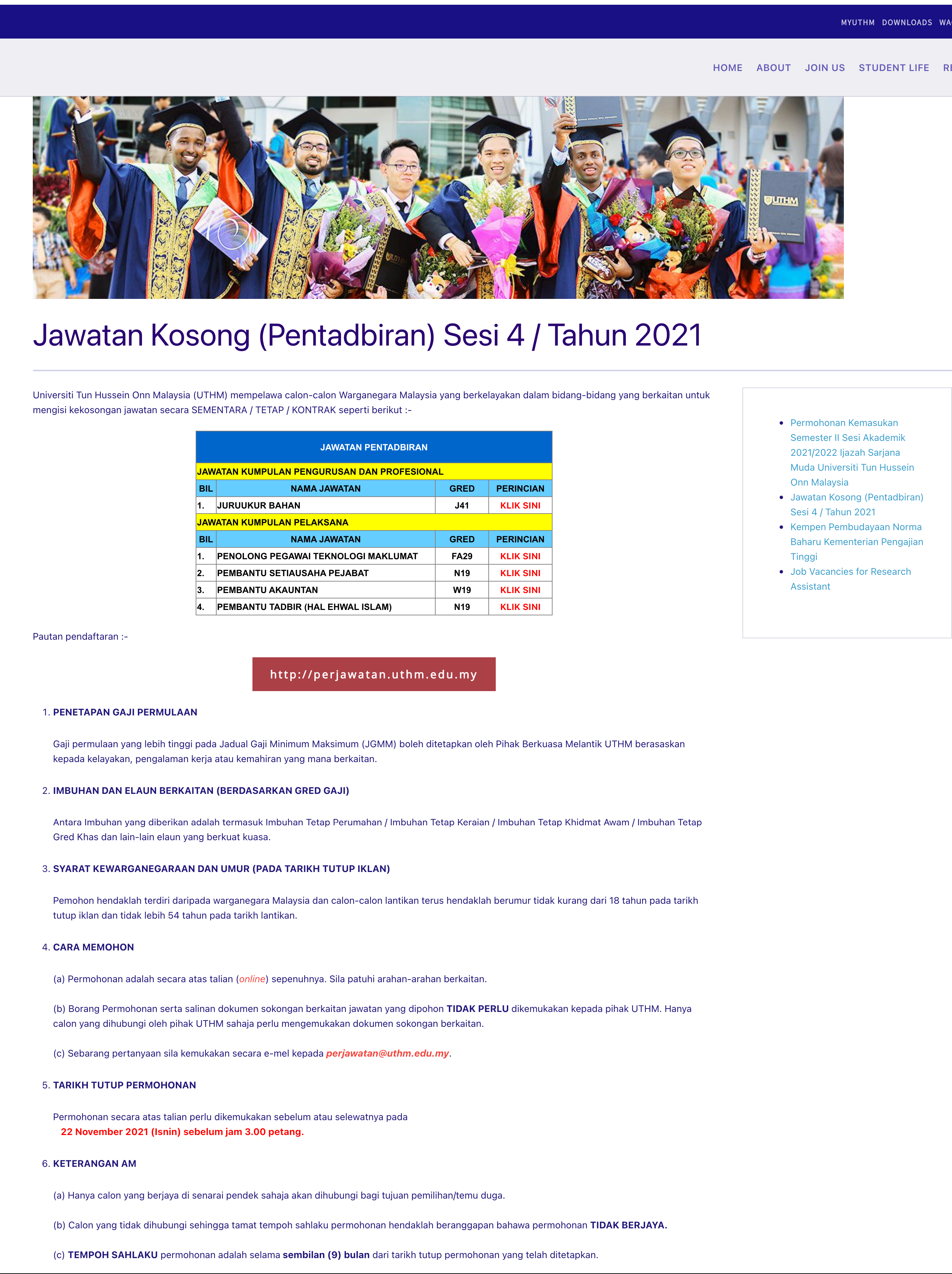 Jawatan Kosong (Pentadbiran) UTHM