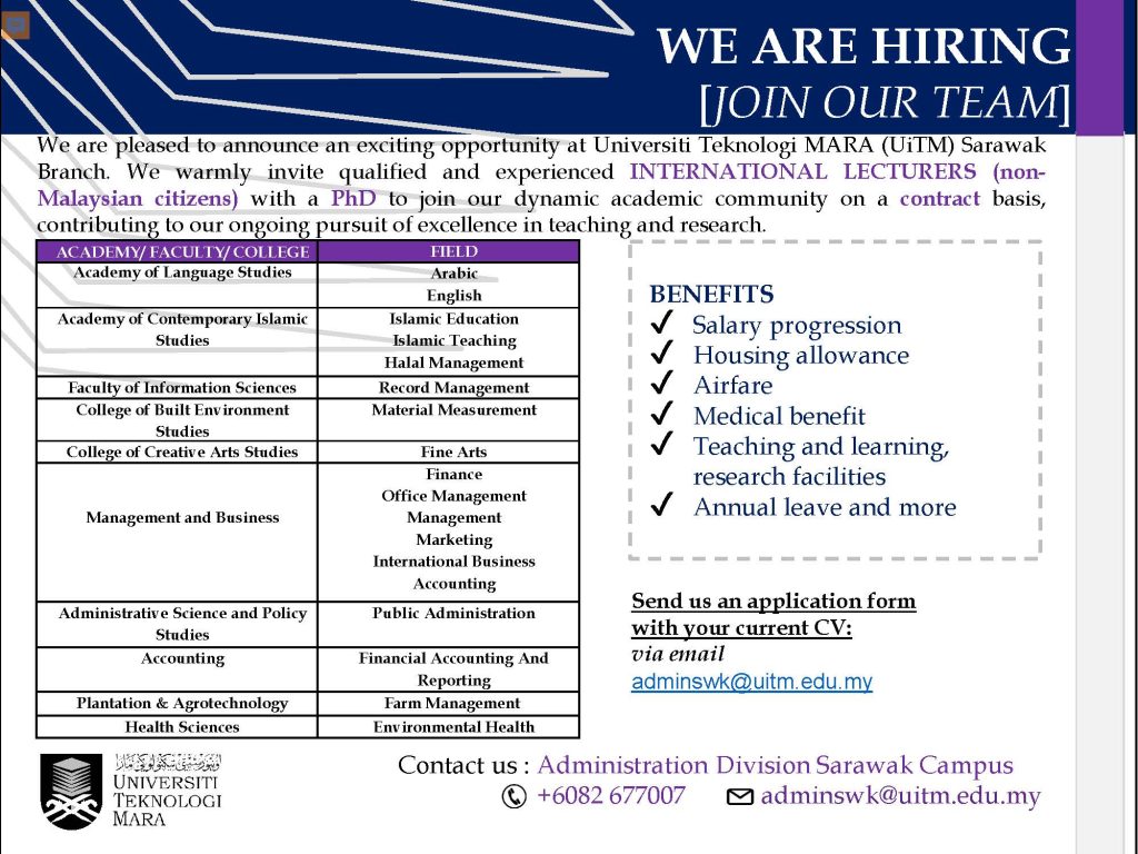 Kekosongan Jawatan Di Universiti Teknologi MARA Cawangan Sarawak
