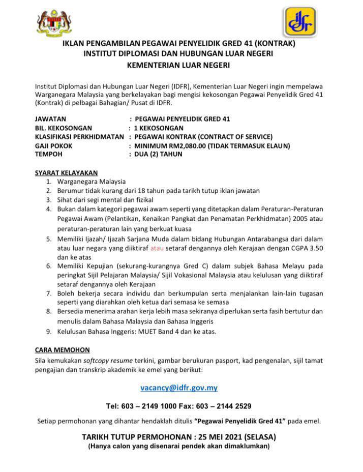- Tarikh Tutup Permohonan: 25 Mei 2021
