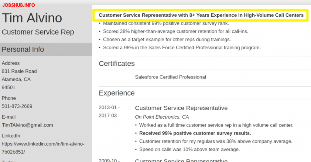 Jika anda lihat dengan teliti, headline di dalam resume sangat penting untuk menarik perhatian majikan dalam tempoh masa yang singkat. Ia membantu majikan untuk fokus kepada matlamat yang mereka mahukan daripada anda serta nilai penting yang ada pada anda untuk disumbangkan ke dalam syarikat.