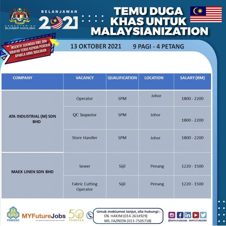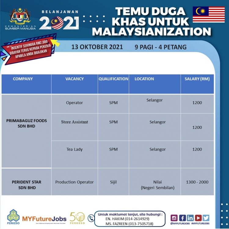 Daftar Temuduga Khas Malaysianization & Terima Insentif RM2,000 Dibayar Terus Jika Dapat Kerja