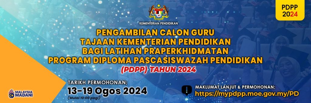 Kementerian Pendidikan Malaysia (KPM) sekali lagi membuka peluang kepada graduan Ijazah Sarjana Muda yang berkelayakan untuk menyertai Program Diploma Pascasiswazah Pendidikan (PDPP) bagi tahun 2024.