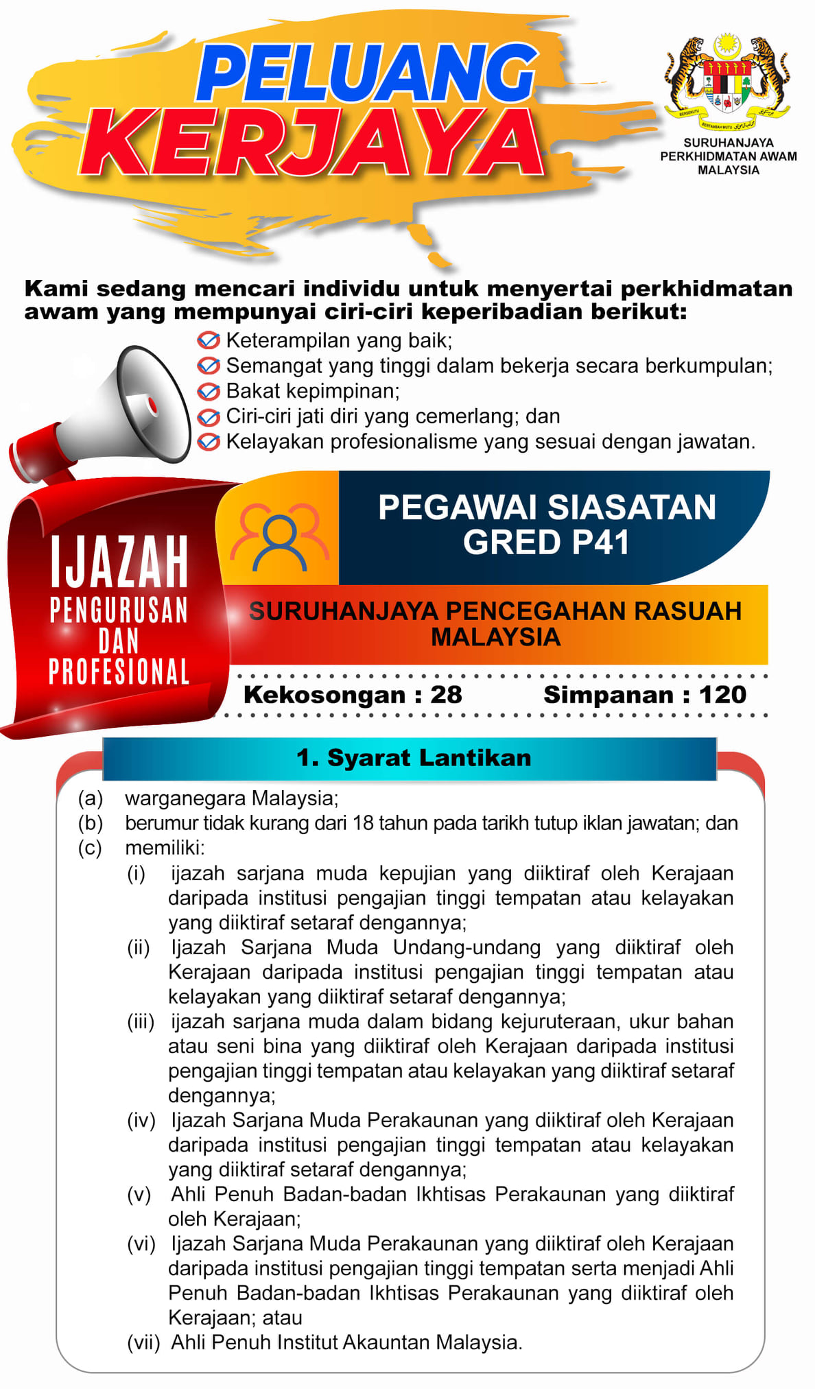 Iklan Jawatan Pegawai Siasatan P41 SPRM