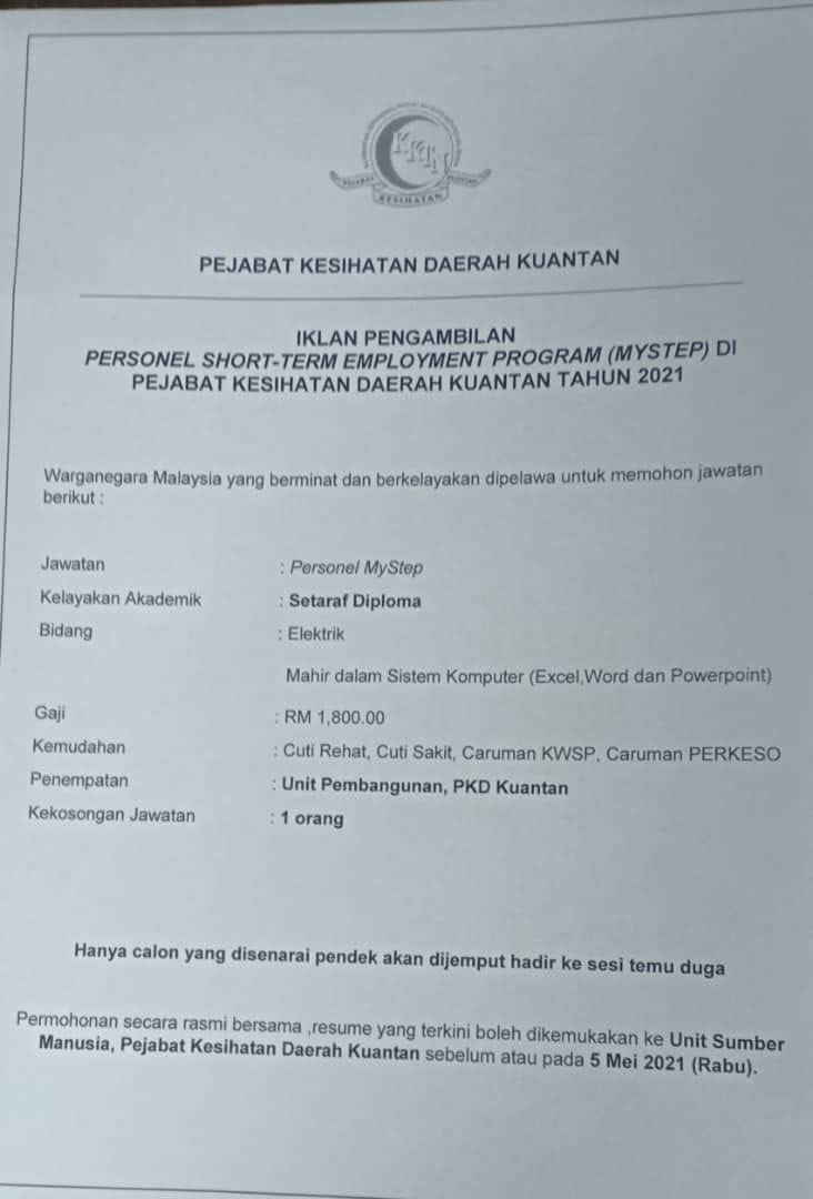 - Nama Majikan: Pejabat Kesihatan Daerah Kuantan