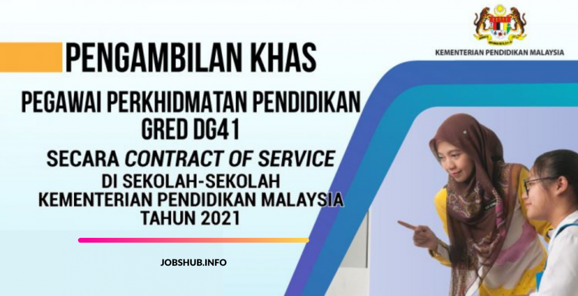 - Calon yang sedang berkhidmat secara tetap dengan Kerajaan Malaysia tidak layak memohon sebagai Pegawai Perkhidmatan Pendidikan DG41 (Contract of Service);