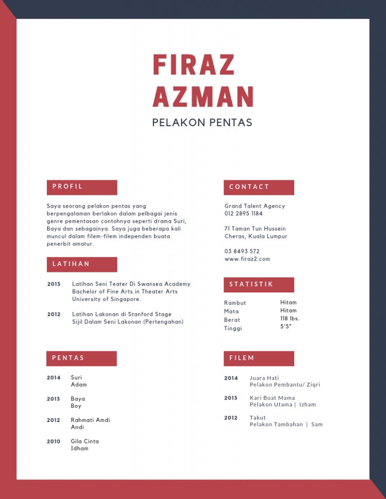 1.) Contoh Template Resume Bagi Kerjaya Lakonan 1