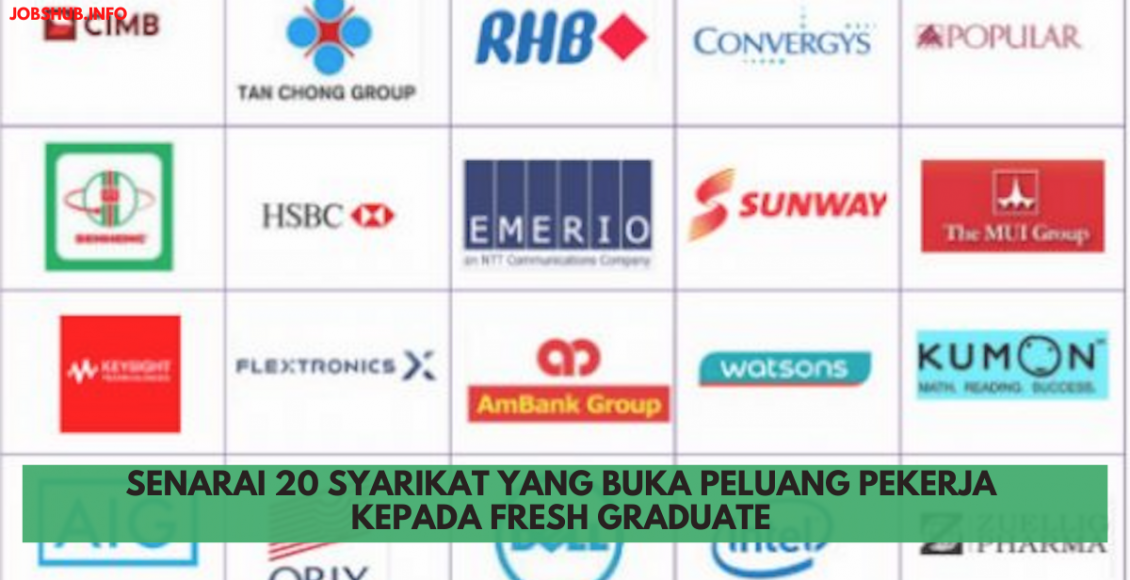 Berikut adalah 20 buah syarikat terkemuka yang menawarkan peluang pekerjaan kepada graduan baru:
