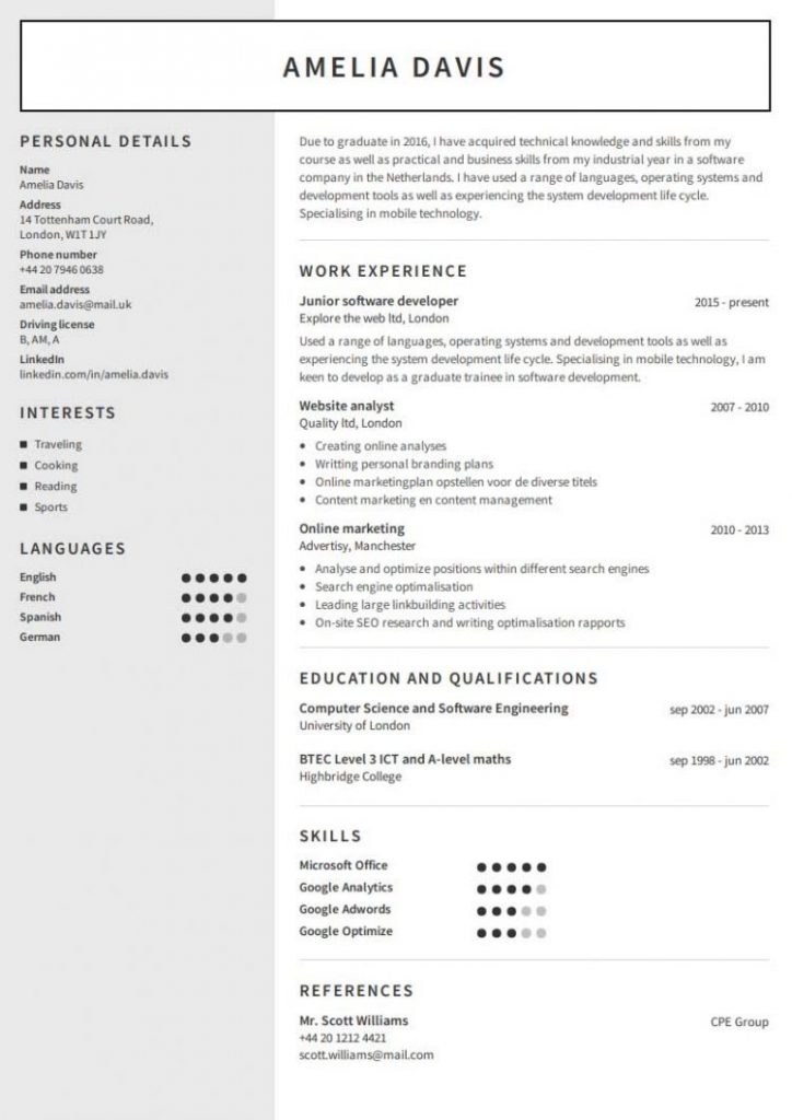 - Fon dan warna: Gunakan fon yang boleh dibaca dan standard seperti Calibri, Georgia, Open Sans dan Cambria. Gunakan saiz fon 10 hingga 12 titik dan konsisten dengan gaya dan ukuran keseluruhan CV anda. Gunakan fon yang lebih besar (ukuran 14 hingga 16 titik) untuk tajuk bahagian. Ini membantu memecahkan bahagian CV anda sambil menjadikan bahagiannya menonjol.